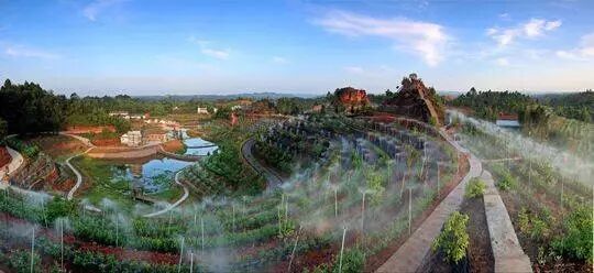 在川茶集团早茶基地,一茬茬茶树整齐地盘绕山坡,雾灌喷管数米相间分布,水雾氤氲之中可见道道彩虹。雾灌种茶不仅实现水肥一体化,而且通过改变光照波长、增加空气湿度、促进茶叶芳香物质合成,打破了低海拔种茶的条件限制。