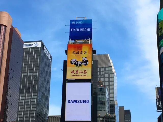 有着“世界的路口”之称的纽约时报广场,年人流量达4.5亿、地铁搭乘人数超过10亿,是全球瞩目的商业核心,也是全球媒体及游客的聚集地。“中国屏”位于纽约时报广场塔楼顶部,常年播放中国主旋律宣传片,已成为国内各大城市与企业竞相展示自身形象的窗口。川茶大区域品牌“天府龙芽”此次亮相“中国屏”,开启了今年在全球推荐四川名茶之旅。