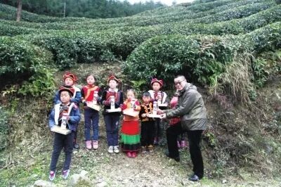 此次赵书新的宜宾之行也包括了另外一个非采茶、非研究茶的地方,那就是屏山县夏溪乡新桥村新彝民族小学。这所小学的8位彝族小朋友与吴裕泰之间有一段三年前开始的佳话。早在2015年,吴裕泰就曾为这8位贫困儿童举行义演。此次赵书新来看望这些孩子,也给他们带去了精美礼品和学习用品,并鼓励他们好好学习,以后为改变家乡的贫困面貌做出贡献。