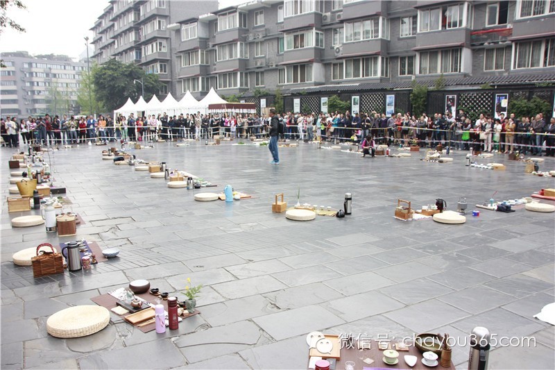 天下茶友网3月31日讯:落座,正姿,入茶,提壶,注水,出汤,奉茶,谢茶,品茗。今天上午,第二届宽窄巷子国际无我茶会在古蜀文化名片之地的宽窄巷子东广场如期举行。60位茶友齐聚千年少城遗址,以香茗之名,酬茶友之谊,扬无我茶会之境界。来自全国各地的游客和茶友齐聚东广场驻足观看,他们频频拿起手机和相机记录下这一难得的茶艺盛会。