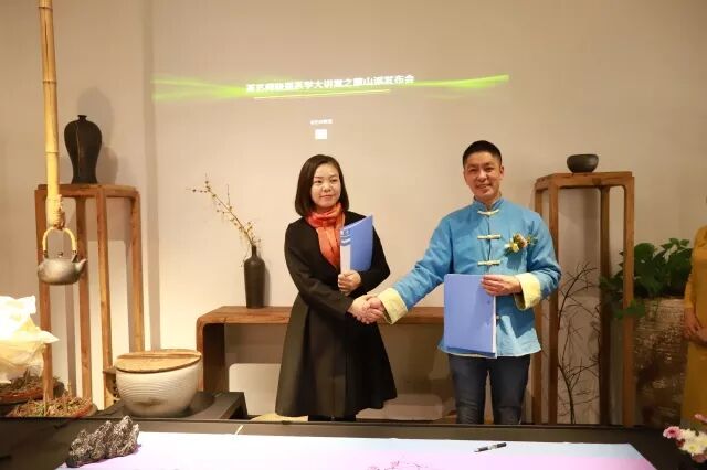 在大家的见证和祝愿下,举行了中国茶艺师联盟与中华蒙山派共同打造茶学大课堂的合作签约仪式,以及中国茶艺师联盟为荥窑主人叶长青颁发空间美学、器物美学终身荣誉导师证书。
