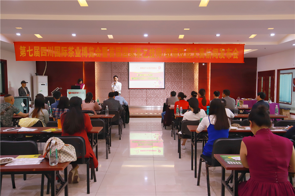 参与本次新闻发布会的嘉宾包括:四川国际茶业博览会组委会张滕军经理,四川茶为国饮茶业有限公司余良 董事长,四川华夏茶艺培训学校 贺晶晶 副校长,四川华夏茶艺学校(1211)国家职业技能鉴定所张艳所长,四川省茶叶流通协会副会长、龙和国际茶城 覃中显董事长,龙和国际茶城 牟益民副总经理,四川省农业国际交流协会 张泽荣副会长, 四川省茶艺术研究会何修武 会长,天下茶友网CEO杨健,水润天下有限公司马毅总经理,三胖蛋瓜子李继总经理,叶雨堂王艳君老师,茗里藏茶任燕老师,华夏茶学阆中分校 胡骏达老师,华夏茶学崇州分校马艳老师,华夏茶学大邑分校杨智琼老师,华夏茶学普皇分校程祖国老师,德阳东篱茶学堂 何佳老师,技师学徒代表宋琦山班长及参赛选手共计100余人参加了今天的发布会。