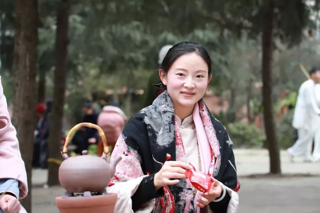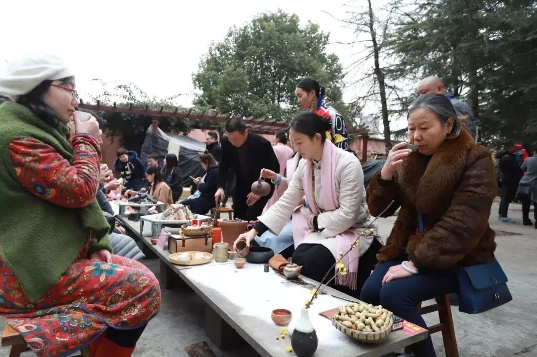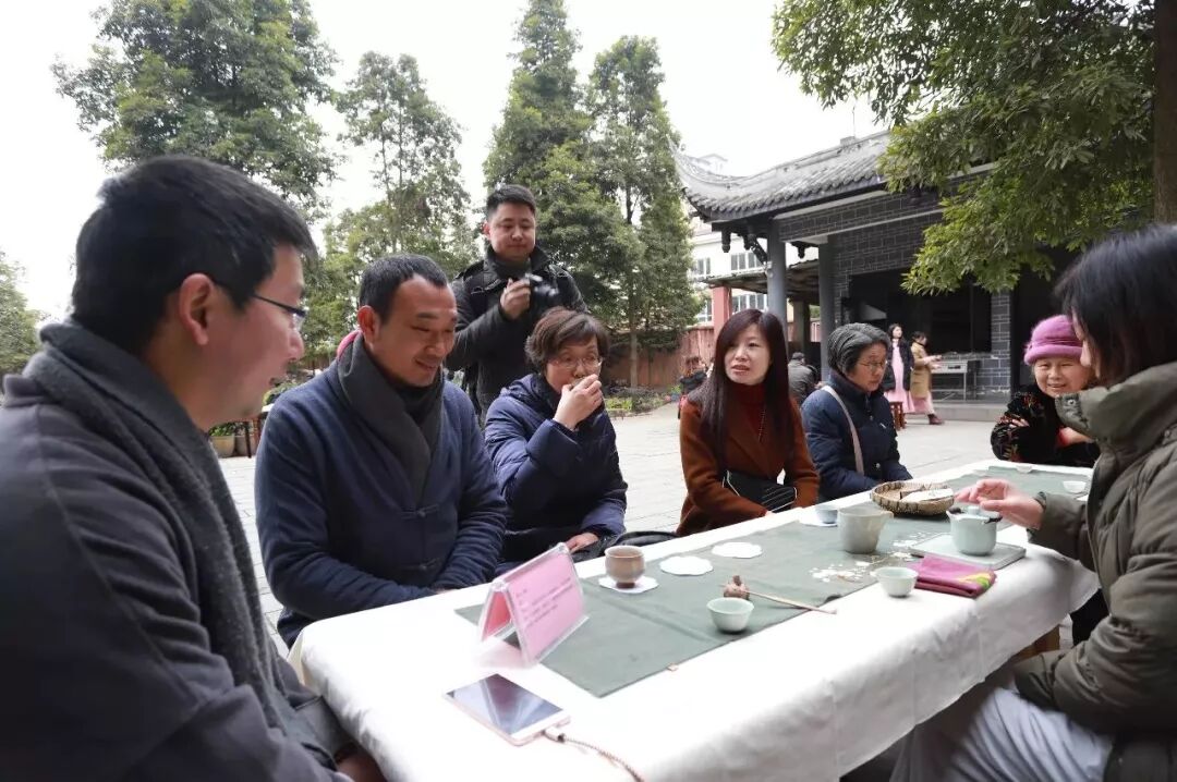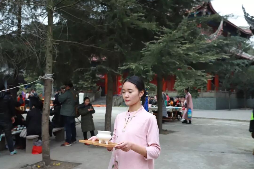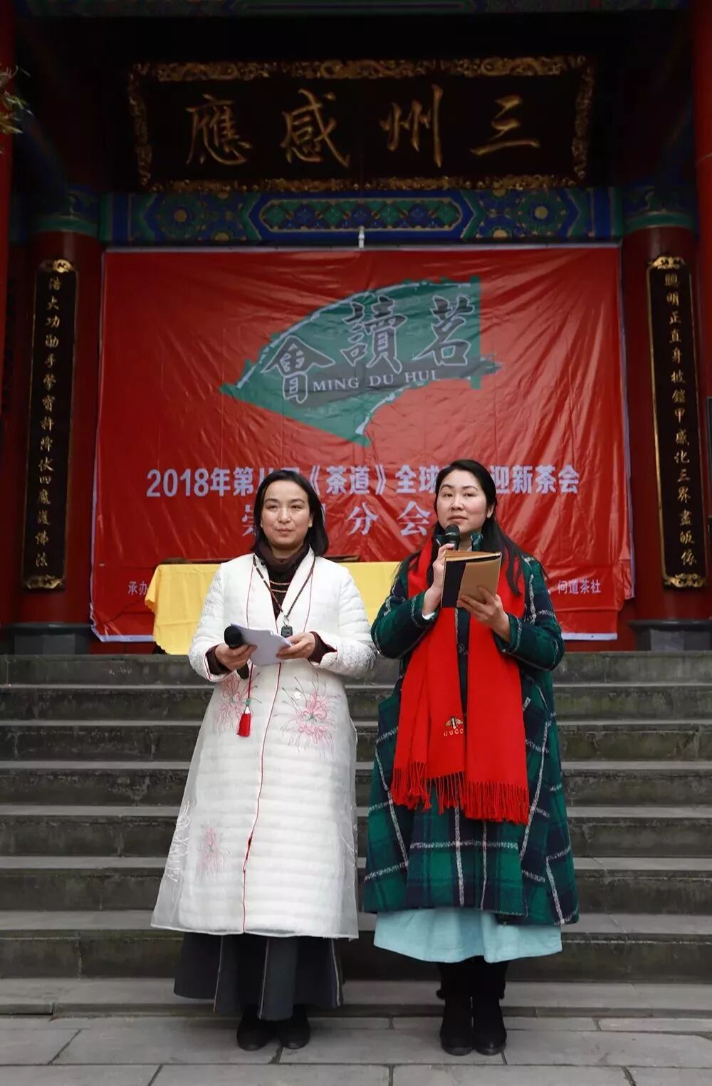 本次茶会由《茶道》成都、崇州、都江堰办事处主办,崇州天目寺、《茶道》四川联络处、成都大观茶行、小钦茶源、天下茶友网、问道茶社承办,《茶道》崇州站主办人罗小钦女士、都江堰问道茶社黄英女士共同主持。此次茶会邀请了四川茶文化协会常务副会长张晶,著名书法家胡本英,《茶道》主笔陈勇光,天下茶友网CEO杨健,崇州市文联副主席、崇州市书法家协会主席范铭,崇州市文联副主席、崇州市书法家协会副主席古鸣清,崇州市书法家协会副主席周世尧、崇州市书法家协会副秘书长田野等四川茶界名人参加,吸引了全川社会各界的爱茶人士100多人参与。茶会共设十四个茶席,有两个感恩茶席,其中每席有1名主泡,茶客按抽签分别落座,与来自全川各地的爱茶人一起品茗、读书、赏艺(书法、古琴、太极)......是一场辞旧迎新的新春茶会。