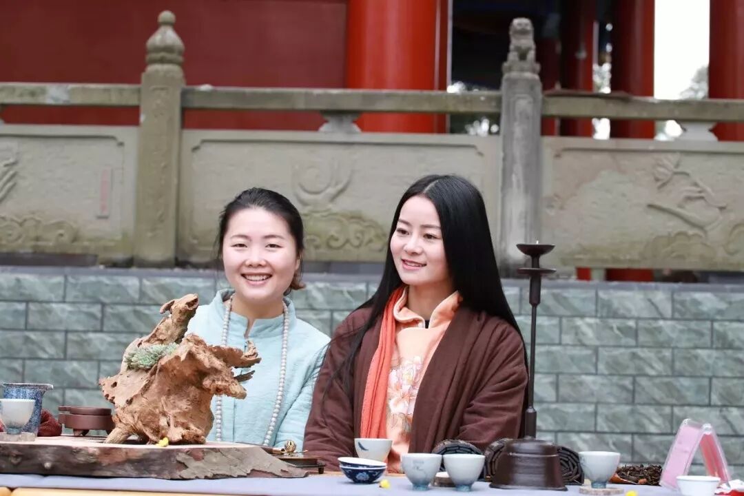 ▲主持人:小钦茶源女主人罗小钦女士(左)、都江堰问道茶社黄英女士