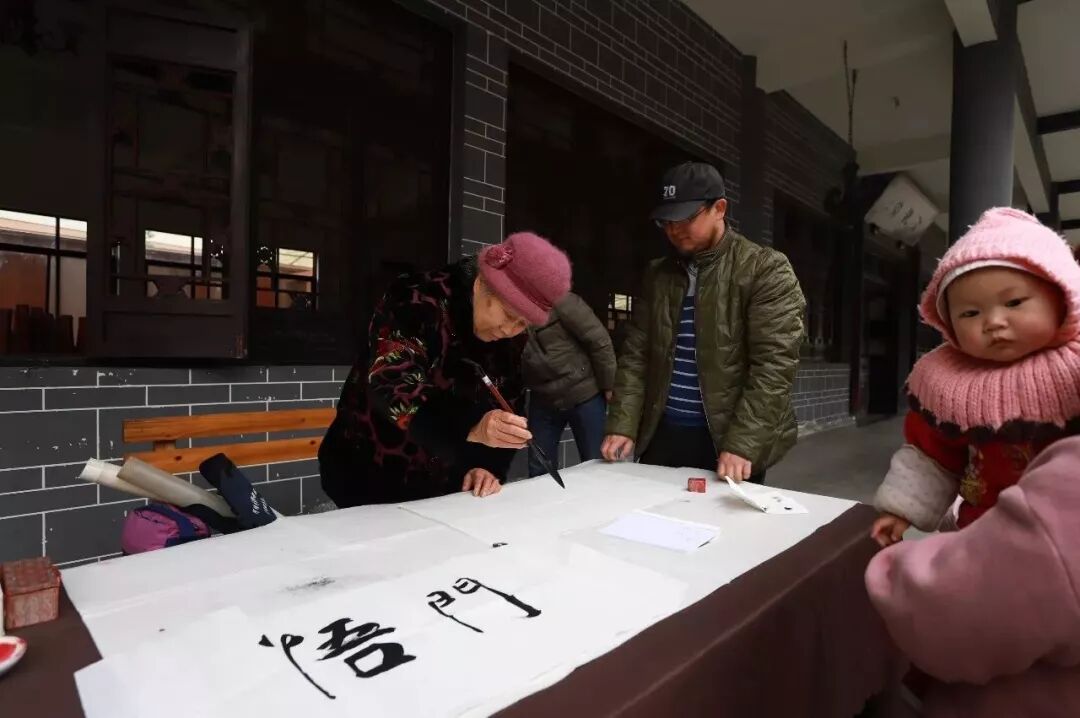 ▲崇州市书法家协会主席范铭现场书法并赠字给茶友