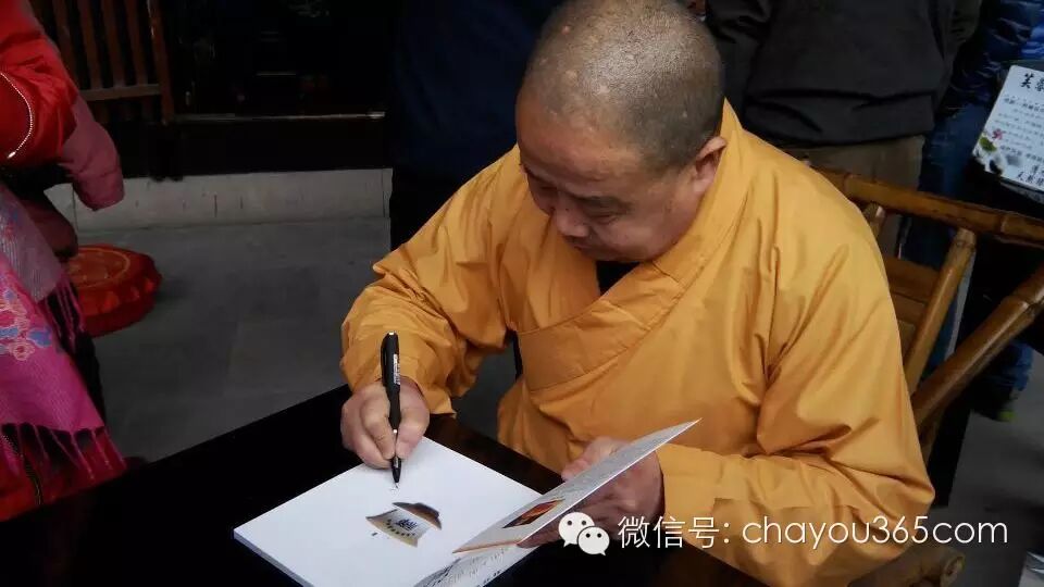 大恩法师在现场亲自签名,为茶友开示。