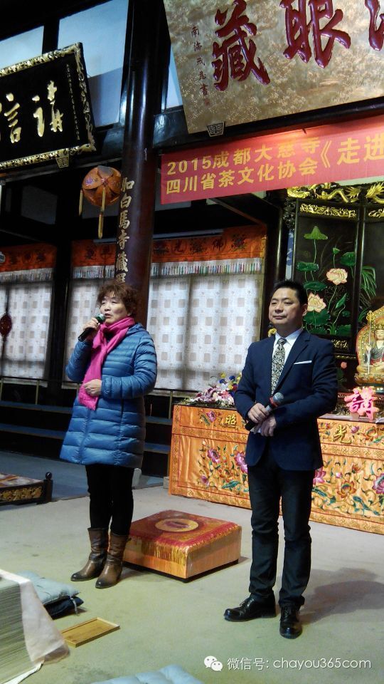 接着,四川省茶文化协会常务副会长张京介绍了这本书出版的意义。她说到,《走进禅茶》的出版,对于传承大慈寺无相禅茶,丰富四川茶文化具有非常重要的历史和时代意义。四川省茶文化协会从2004年开始致力于大慈寺禅茶的研究和推广,10年历程,里面有总结、回顾和展望。这本书的风格朴实,图文并茂。透过本书,可以直观的感受到有很多年轻人积极的参与到禅茶的修行与传承中,展示了大慈寺禅茶的生命力和传承度。张京表示希望《走进禅茶》的出版,有更多的年轻人加入到禅茶文化的修行和推广中来,为弘扬和传承四川茶文化而努力。