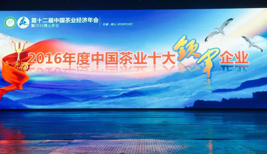 天下茶友网10月31日讯:10月25日,由中国茶叶流通协会、黄山市人民政府主办的第十二届中国茶业经济年会暨2016年黄山茶会在安徽省黄山市召开。本届会议以“绿色•创新•融合•共赢”为核心议题,探讨行业发展前景、分享心得、共谋产业发展大计。会议期间还举行了2016年度行业经济人物、百强企业、重点县等表彰活动,根据全国茶业行业综合实力排名,中国茶叶流通协会授予川茶集团2016年度“中国茶业十大领军企业”、“中国百强企业” (前十强)荣誉称号。