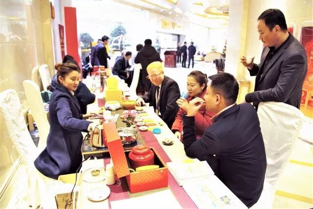 12月17日起,2017中国国际名酒文化节接待酒店大堂,“天府龙芽”六大茶类摆放整齐,举止优雅的茶艺师在轻缓的音乐中酝酿茶香,让不少宾客驻足停留,有人只为解渴品香,有人从中看到商机,开始与川茶集团考察接洽……