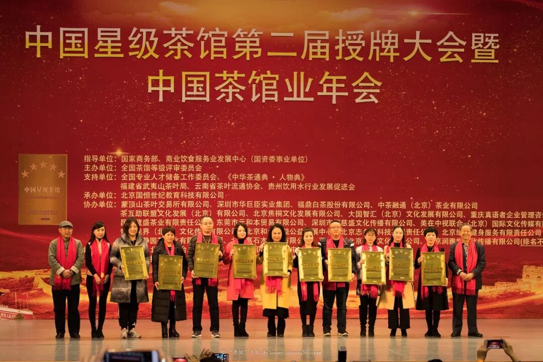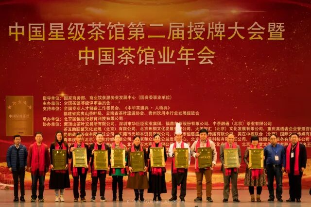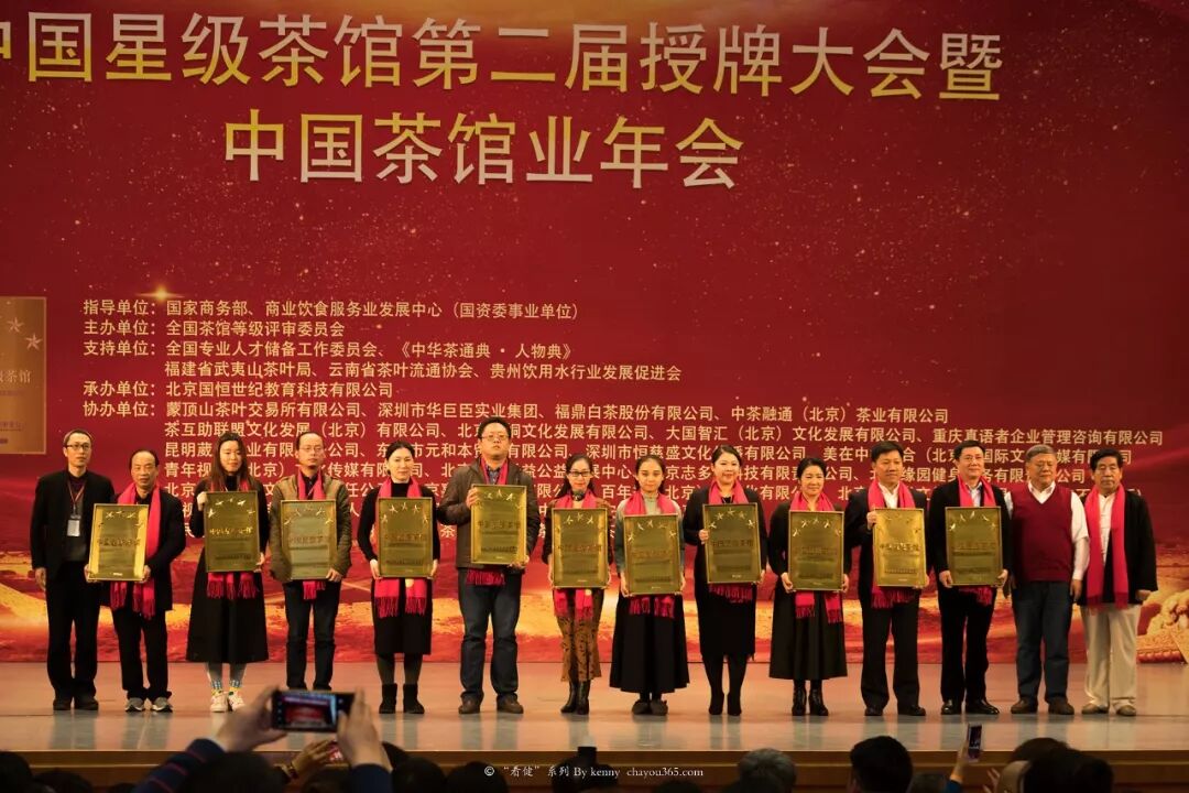 伴随着各位嘉宾精彩的发言,大会进入高潮环节:授证书仪式和中国星级茶馆第二届授牌仪式。