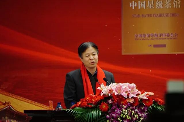 致辞结束后,由全国茶馆等级评审委员会主任孙喆作大会主题报告。
